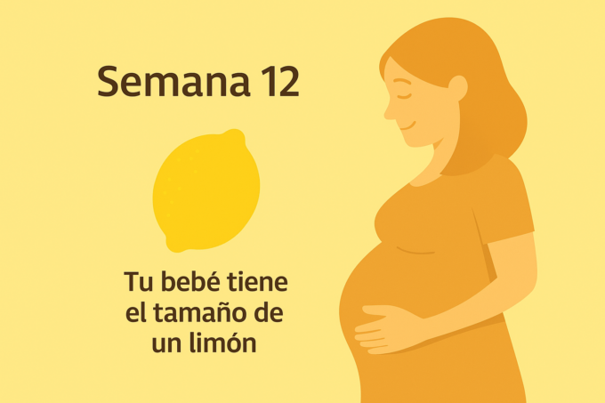 En la semana 12, tu bebé tiene aproximadamente el tamaño de un limón 🍋. Mide cerca de 6 centímetros de la cabeza a la rabadilla y pesa alrededor de 14 gramos, pero dentro de ese pequeño cuerpo ya ocurre muchísimo.